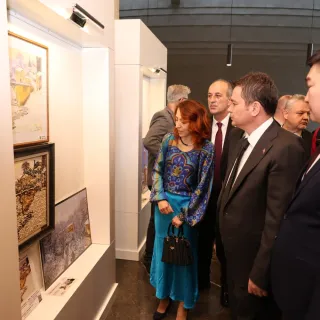 Konuşmaların ardından Osmangazi Belediye Başkanı Erkan Aydın ile protokol üyeleri, serginin açılış kurdelasını kesti. Akabinde sergi alanını gezen Başkan Aydın, tabloları tek tek inceleyerek eserler hakkında yetkililerden bilgi aldı.