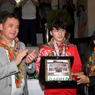 Gecenin sonunda Osmangazi Belediye Başkanı Erkan Aydın ve DAĞDER Genel Başkanı Derya Kaya Başak, Dünya Bilek Güreşi Şampiyonasında Milli formayla mücadele ederek sol kolda tüm rakiplerini eleyip dünya şampiyonu olmayı başaran ve dağ yöresine büyük gurur yaşatan Berat Demir’e plaket vererek tebrik etti.