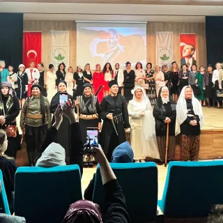 Kutlama etkinliğinin sonunda Nilüfer Kadın Korosu Derneği Üyelerinin düzenlediği Cumhuriyet Kadınları Defilesi izleyenlerden tam not aldı.