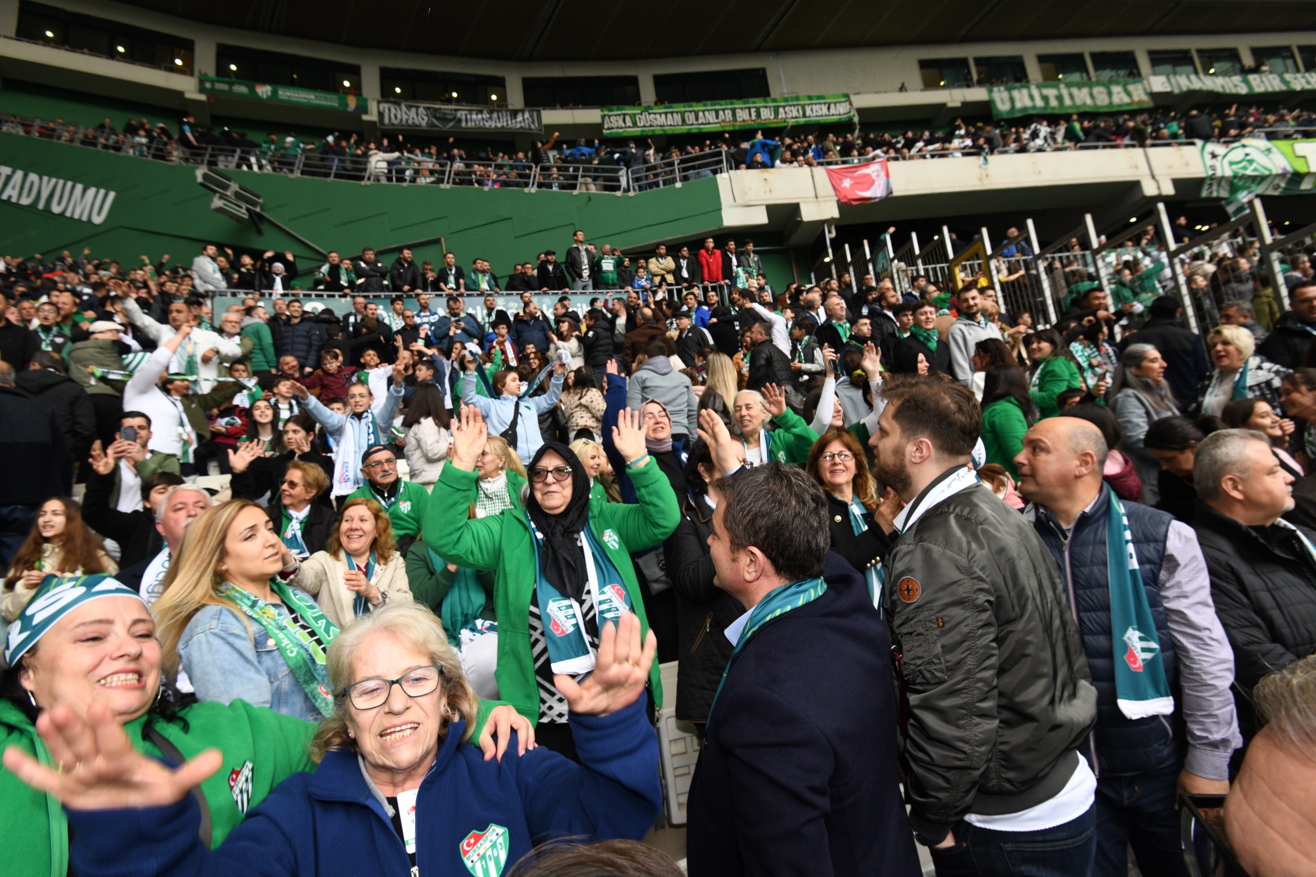 Osmangazili vatandaşlarla tribünde yakından ilgilenen Osmangazi Belediye Başkanı Erkan Aydın da, müsabaka boyunca coşkularını paylaştı. Yeşil beyazlı taraftarların da yoğun ilgisiyle karşılaşan Başkan Aydın, fotoğraf isteklerini geri çevirmeyerek, o anları ölümsüzleştirdi.