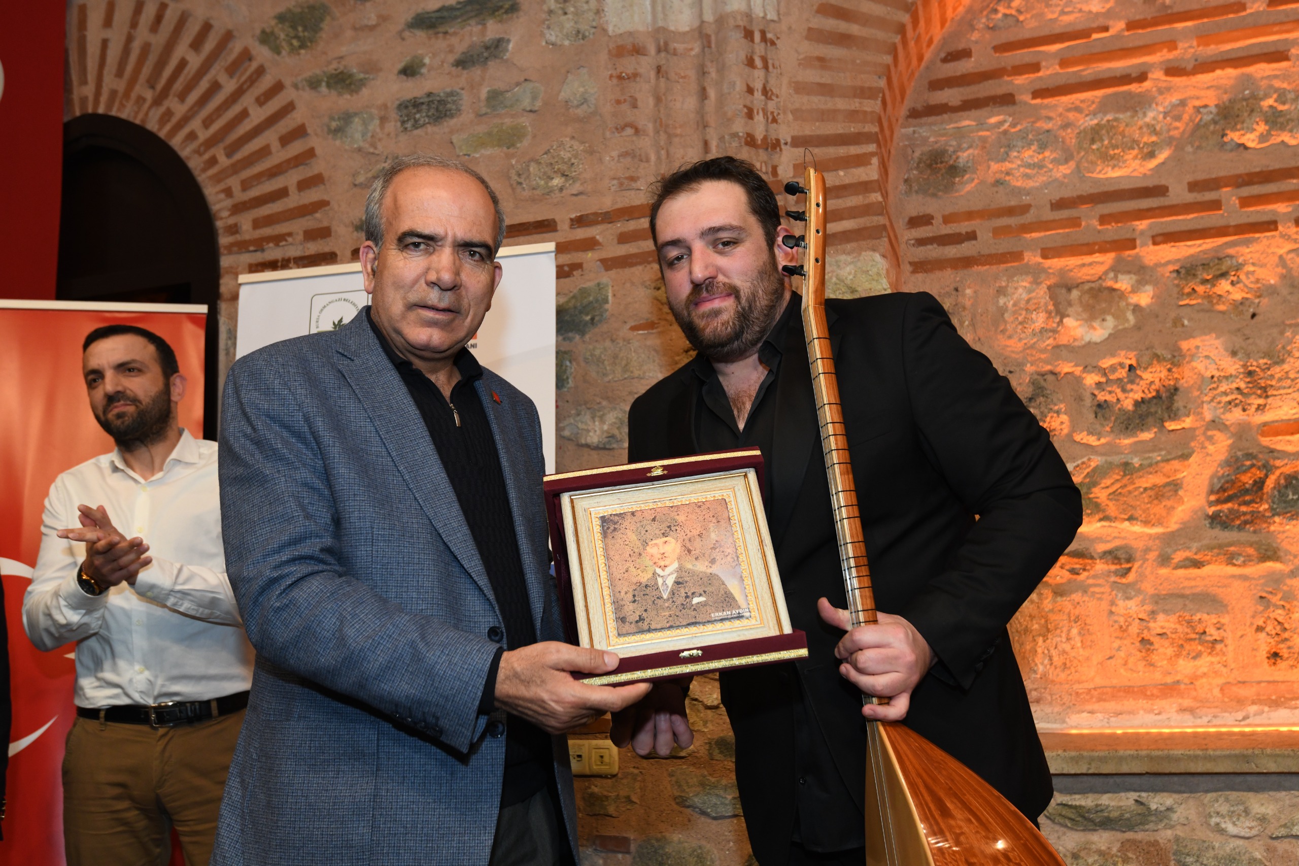 Programın sonunda Osmangazi Belediye Başkan Yardımcısı Mutlu Esendemir ve CHP Osmangazi İlçe Başkanı Raşit Gürbüz, Saz sanatçısı Selçuk Oruç’a ve Bursa Uludağ Üniversitesi Türk Dili ve Edebiyatı Bölümü Öğretim Üyesi Doç. Dr. M. Emir İlhan’a teşekkür plaketi takdiminde bulundu.