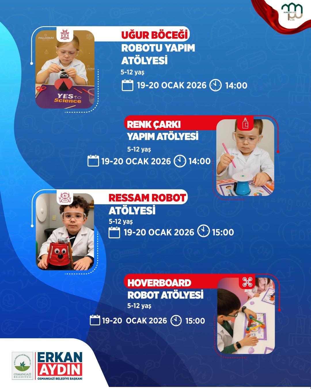 Osmangazi Belediyesi, 7–17 yaş arasındaki çocuklar ve gençler için dopdolu bir Bilim Şenliği düzenlemeye hazırlanıyor. Osmangazi Gösteri Merkezi’nin ev sahipliğinde 19–23 Ocak tarihleri arasında düzenlenecek olan şenlik, bilim ve teknoloji meraklısı çocuk ve gençleri bir araya getirecek.