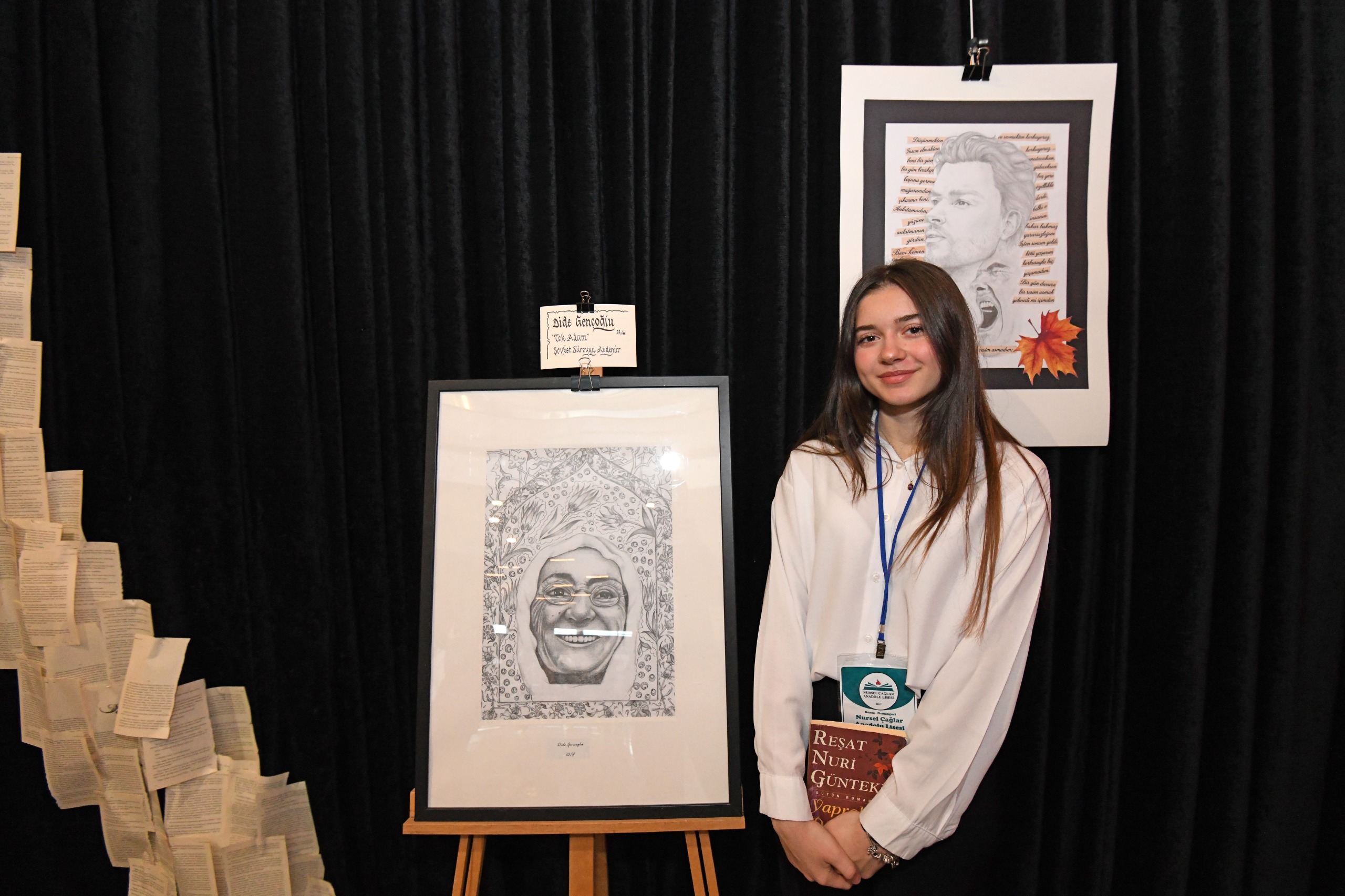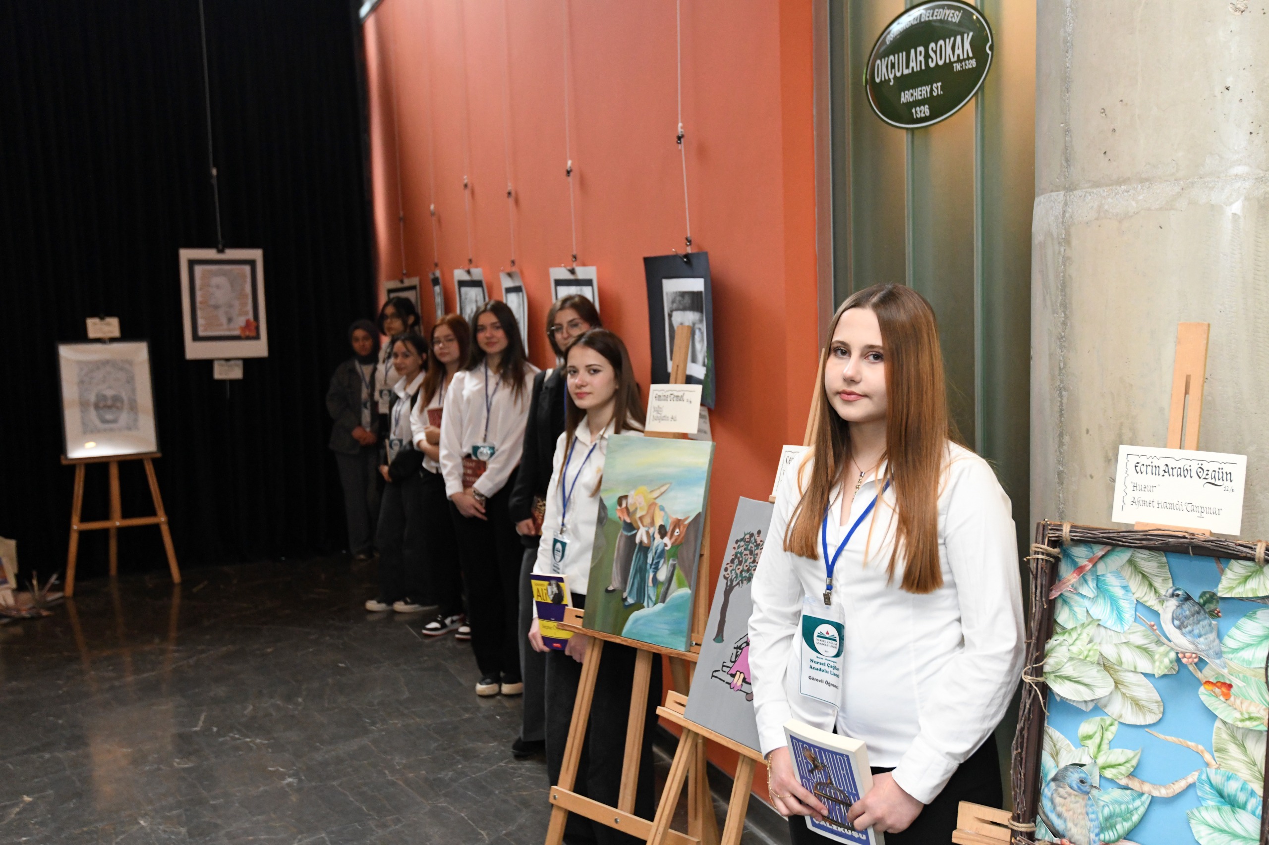 Bursa İl Milli Eğitim Müdürlüğü AR-GE Birimi’nin hazırladığı ve Türkçe ile dil eğitiminde iyi örnek olarak sunulacak çalışma, bu yıl için bir sergiye dönüştürüldü. Nursel Çağlar Anadolu Lisesi öğrencileri, okudukları eserlerden etkilenerek kahramanları, mekanları ve dikkatlerini çeken sözleri resimlerine yansıttı. Öğrencilerin tamamen kendi seçimleriyle şekillenen eserler, edebiyatın derinliğini görsel sanatlarla buluştururken; Bursa’ya özgü geleneksel sanat ve zanaat unsurlarıyla zenginleştirildi.