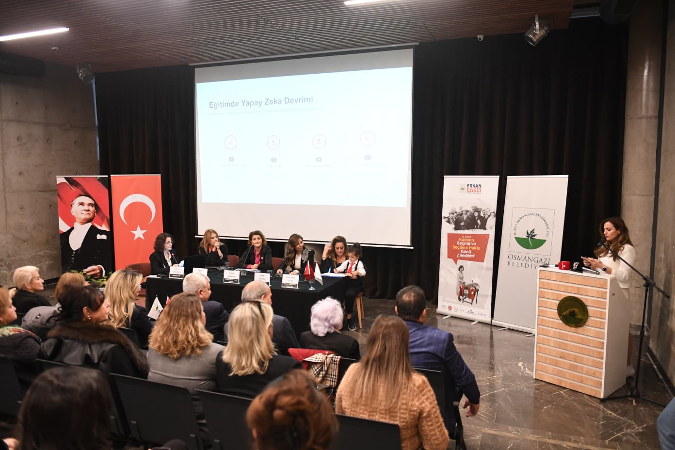 Hayatın her alanında toplumsal cinsiyet eşitliğini temel alan yaklaşımlarla çalışmalarını gerçekleştiren Osmangazi Belediyesi, 5 Aralık Kadının Seçme ve Seçilme Hakkı Günü etkinlikleri kapsamında ‘İnsan Kadın’ adlı panel ile ‘Haremden Özgürlüğe Türk Kadınının Bağımsızlık Öyküsü’ isimli sergiye ev sahipliği yaptı.