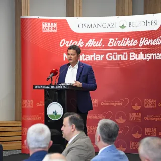 Tüm muhtarların 19 Ekim Muhtarlar Gününü kutlayarak sözlerine başlayan Osmangazi Belediye Başkanı Erkan Aydın, "Muhtarlar demokrasinin yapı taşlarıdır. En altta vatandaşla birebir temas eden gecenin 12'inde de sabahın 5'inde de ilk aranılıp kapısı çalınan muhtarlardır. 18 Ekim 1829 yılında muhtarlık teşkilatı kuruldu. 2015 yılından itibaren de ülkemizde kutlanıyor. 4 yıl sonra muhtarlık teşkilatının 200'üncü yılı kutlanacak. 31 Mart’ta mazbatasını alamadan hayatını kaybeden Gökçeören Muhtarımız Emin Batmaz'a yine Seçköy Muhtarımız Hüseyin Türe'ye ve son olarak Yiğitali Muhtarımız Şaban Kaya'ya Allahtan rahmet yakınlarına başsağlığı diliyorum.