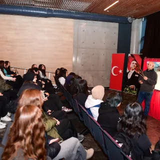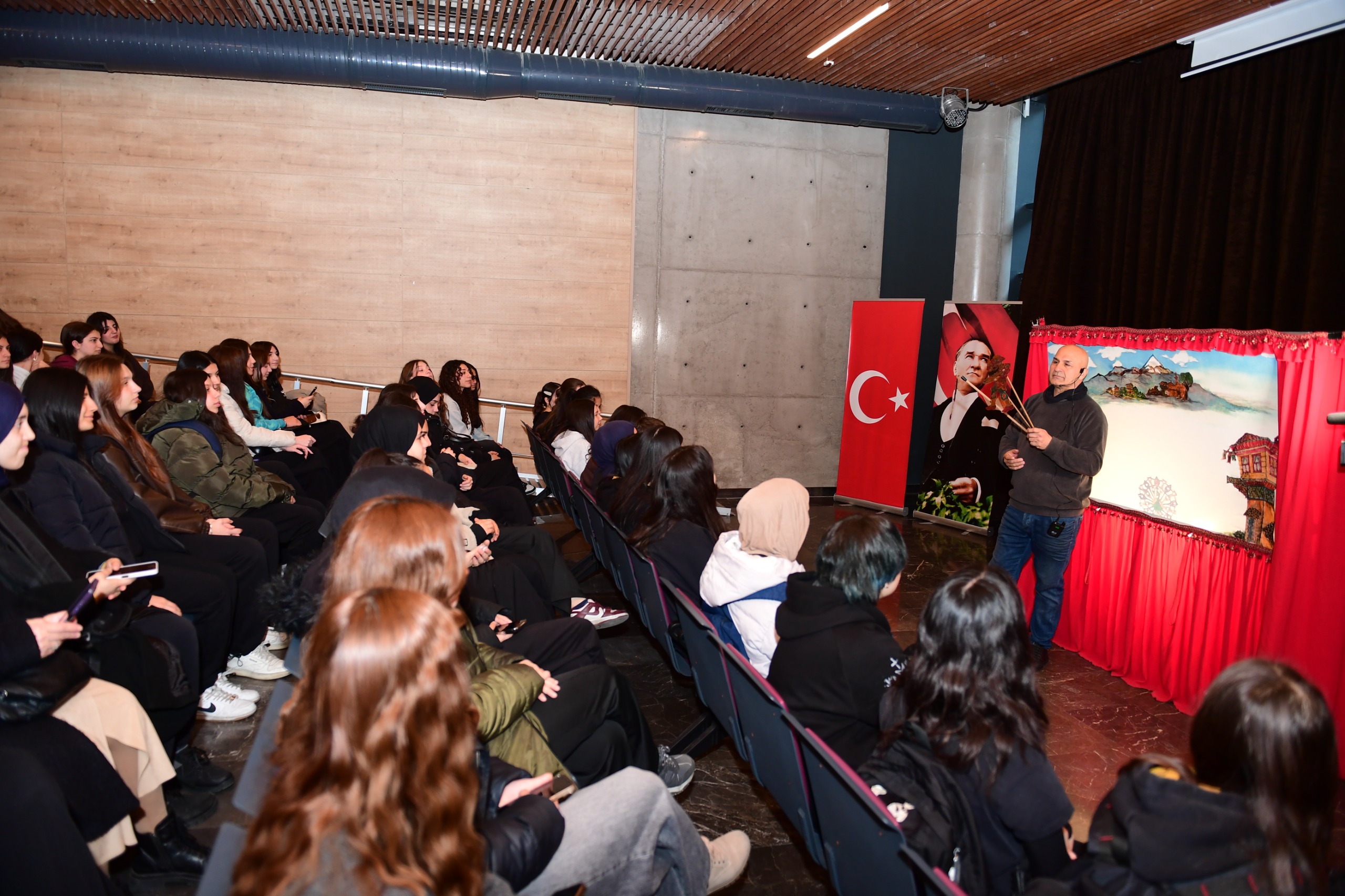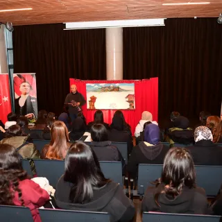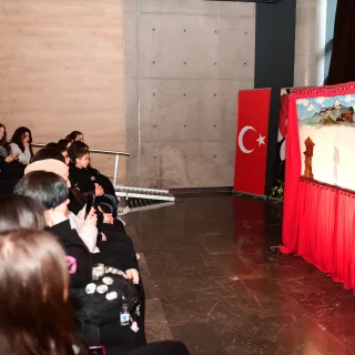 Öğrenciler ise Karagöz gölge oyununu ilgiyle takip ederek, Çiftçi’nin söyleşisinde Karagöz ve Hacivat karakterlerine ilişkin önemli bilgiler aldı.