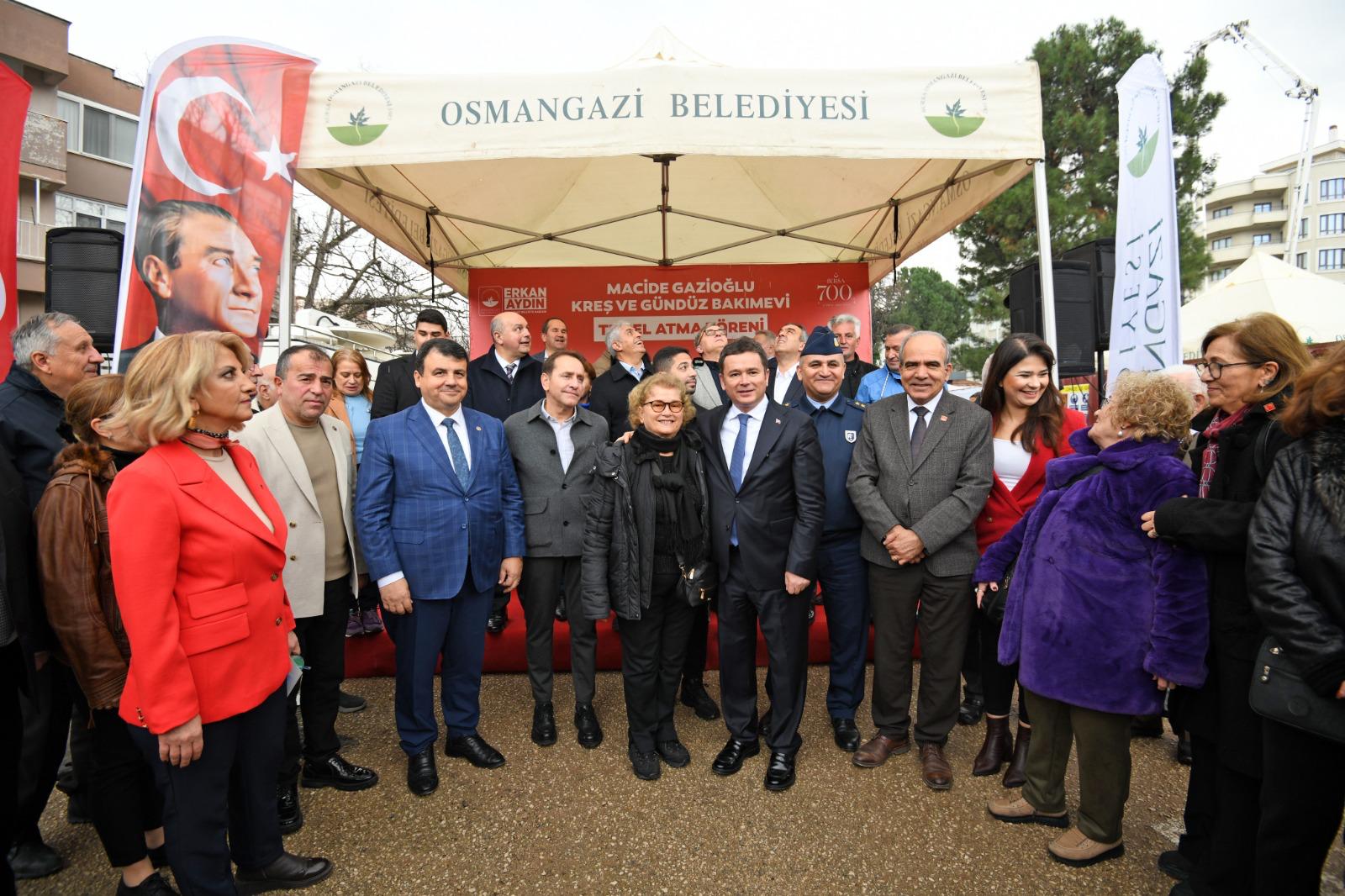 Göreve geldiği günden bu yana ilçeyi sosyal yatırımlarla buluşturan Osmangazi Belediye Başkanı Erkan Aydın, çocukların güvenli ortamda yetişmesine katkı sağlayacak önemli bir projeyi daha hayata geçirerek Macide Gazioğlu Kreş ve Gündüz Bakımevi ile Aile Sağlığı Merkezi’nin temelini attı.