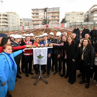 Konuşmaların ardından Başkan Erkan Aydın ve protokol üyeleri, butona basarak Macide Gazioğlu Kreş ve Gündüz Bakımevi ile Aile Sağlığı Merkezi’nin ilk harcını döktü.