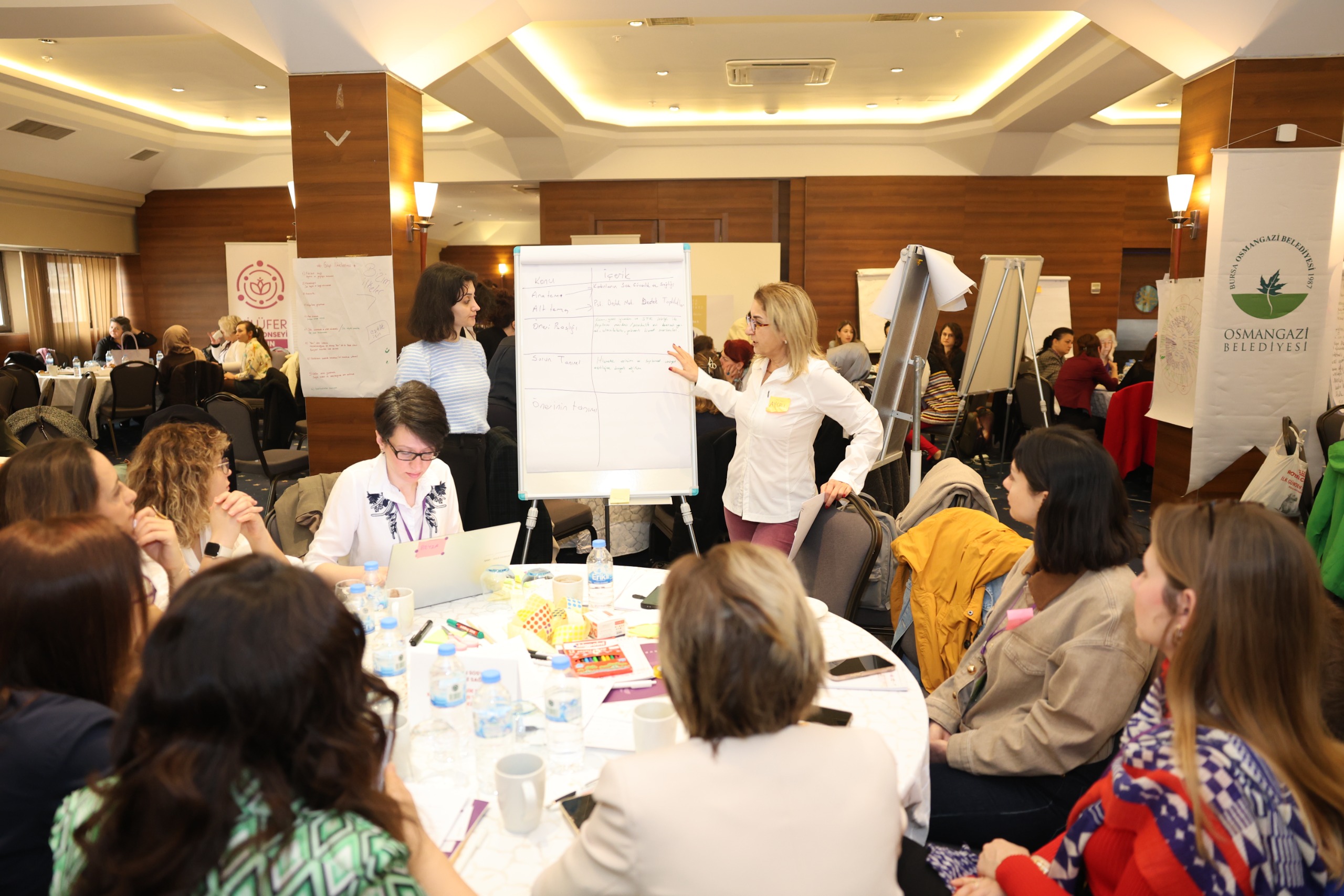 Osmangazi Belediyesi, kadınların toplumsal yaşamın her alanında güçlenmesini önceleyen vizyoner yaklaşımıyla önemli bir organizasyona daha ev sahipliği yaptı. Kadınlara yönelik sosyal, ekonomik ve kültürel projeleriyle örnek olan Osmangazi Belediyesi, eşitlikçi ve kapsayıcı bir kent hedefi doğrultusunda Osmangazi Kent Konseyi Kadın Meclisi, Bursa Kent Konseyi Kadın Meclisi, Nilüfer Kent Konseyi Kadın Meclisi, Bursa Barosu Kadın Hakları Merkezi ve YEİP iş birliğiyle “Bursa Kadın Çalıştayı: Şehirde Eşit Adımlar” programını gerçekleştirdi. İki gün boyunca süren çalıştay, 20 moderatör, 20 raportör, 110 katılımcı ve organizasyon ekibinin de dahil olduğu yaklaşık 200 kişilik geniş bir buluşmayı sağladı. Kadınların kent yaşamındaki haklarını, ihtiyaçlarını ve taleplerini görünür kılan çalıştay; eşitlikçi ve kapsayıcı yerel politikaların inşasına güçlü bir zemin sunan kolektif bir üretim süreci olarak dikkat çekti. Bursa Büyükşehir Belediye Başkanı Mustafa Bozbey ve Osmangazi Belediye Başkan Yardımcısı Mutlu Esendemir’in de katıldığı sonuç oturumunda somut, uygulanabilir ve dönüştürücü çözüm önerileri geliştirilerek paylaşıldı.
