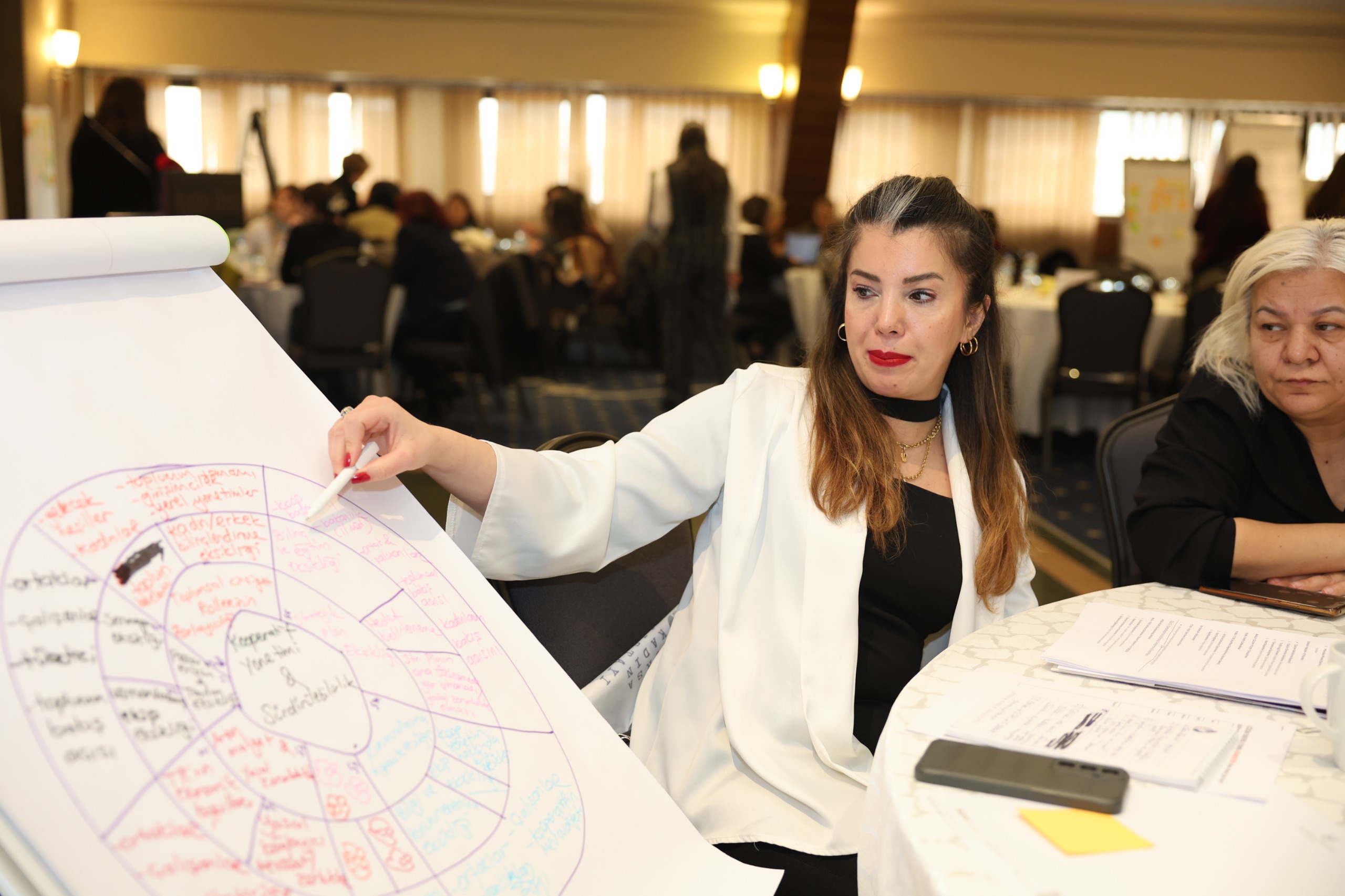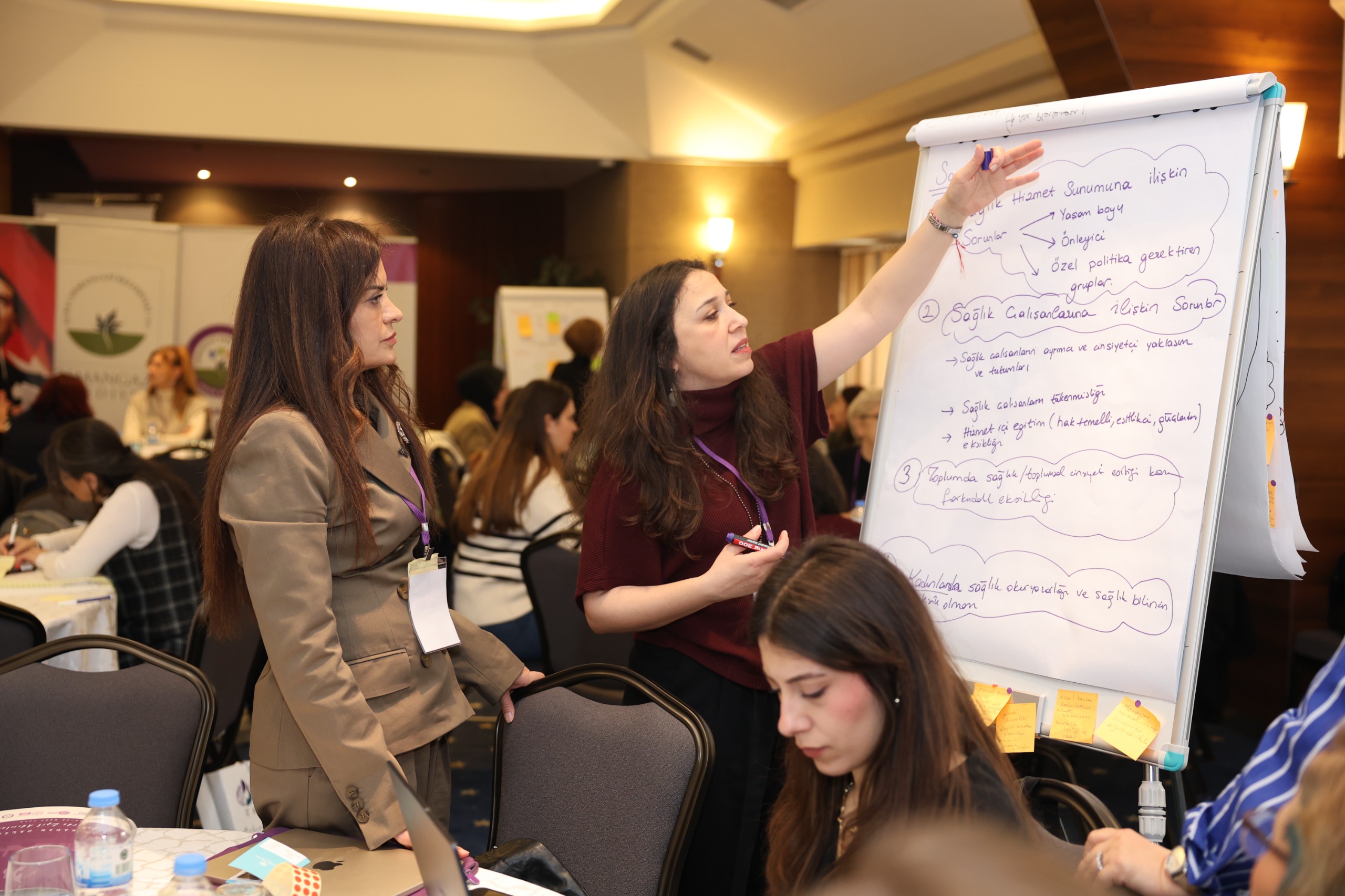 Çalıştay boyunca 5 ana masa ve 15 alt masa olmak üzere toplam 20 masada yürütülen yoğun tartışmalar ve atölye çalışmaları sonucunda, birçok başlıkta kapsamlı değerlendirmeler yapıldı. Kadın girişimciliği ve kooperatifçilik alanında; finansman ve destek mekanizmaları, kooperatif yönetimi ve sürdürülebilirlik ile eğitim ve mentorluk konularında önemli öneriler geliştirildi. Yerel yönetimlerde kadın politikaları kapsamında; kadın dostu şehir tasarımı, kadın temsili ve liderlik ile sosyal hizmetlerin güçlendirilmesine yönelik somut adımlar ele alındı. Eğitim ve teknoloji başlığında; dijital okuryazarlığın artırılması, teknolojiye erişimin kolaylaştırılması, STEM alanlarında kadınların güçlendirilmesi ve eğitim fırsatlarının yaygınlaştırılması konuları öne çıktı. Kadınların sosyal güvenliği ve sağlığı alanında; şiddetle mücadele ve rehabilitasyon, sağlık hizmetlerine erişim, önleyici sağlık uygulamaları ile psikolojik destek mekanizmaları detaylı şekilde değerlendirildi. Kadın istihdamı ve çalışma hayatı başlığında ise; kadın istihdamının artırılması, sosyal destekler, kadın dostu işyerleri ve kurumsal politikalar ile kadınların emek ve meslek örgütlerindeki hakları ve temsiliyeti üzerine kapsamlı öneriler ortaya kondu.