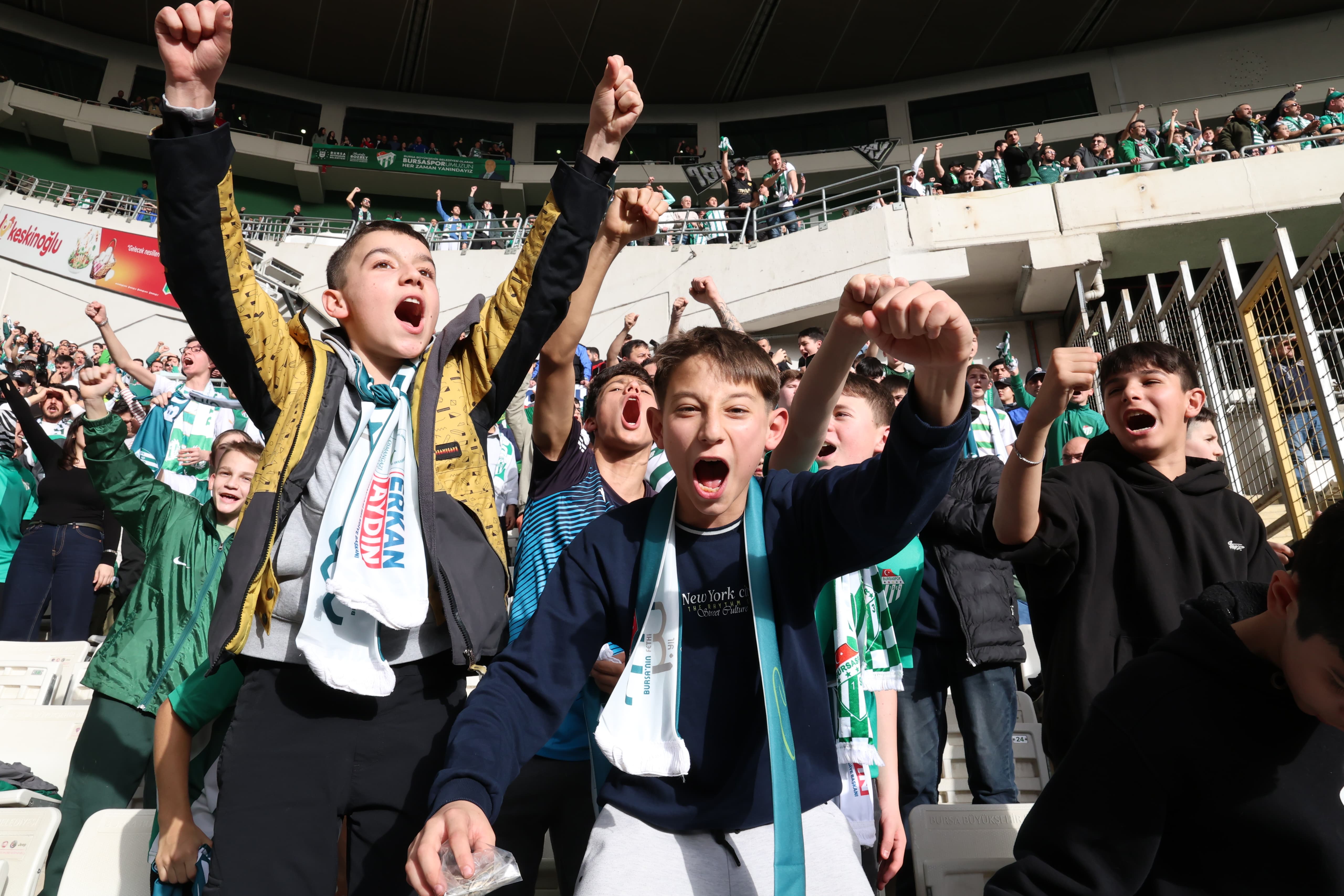 Alacamescit, Orhanbey, Hocaalizade, Hürriyet Adalet ve Pınarcık mahallelerinden katılan çocuklar, yeşil-beyaz renklere bürünen statta tezahüratlarla takımlarına destek verdi. İlk kez stadyum atmosferini soluyan genç taraftarların mutluluğu yüzlerinden okunurken, ortaya çıkan renkli görüntüler dikkat çekti. Bursaspor’un Kırklarelispor karşısında aldığı 4-0’lık galibiyet, tribünlerdeki heyecanı daha da hareketlendirdi.
