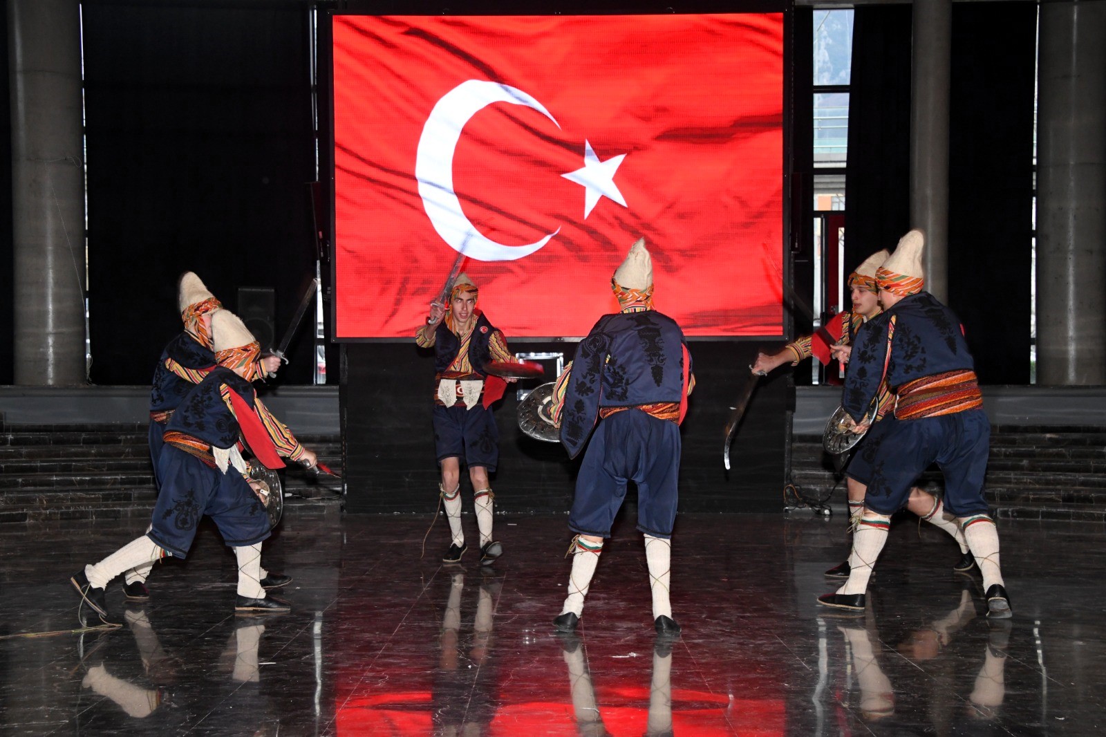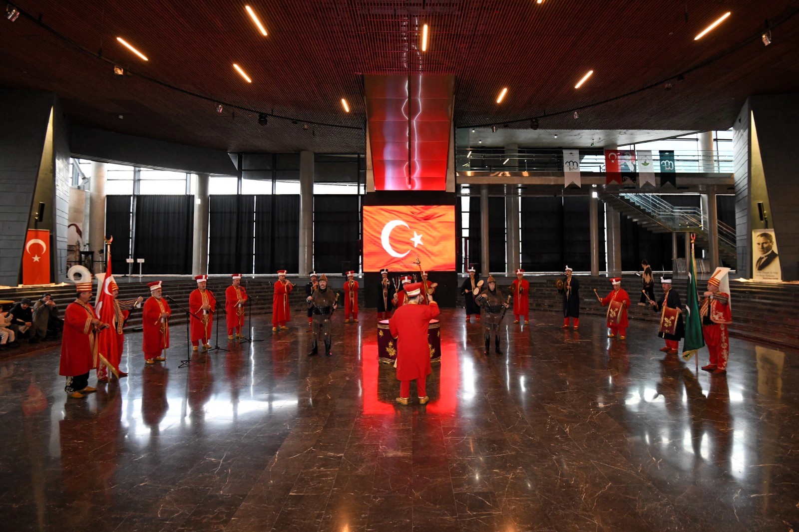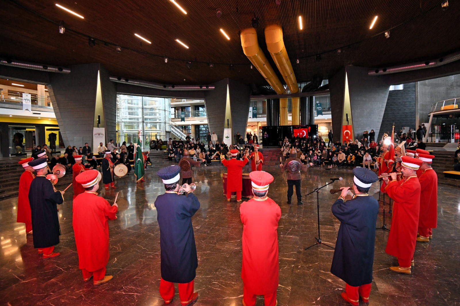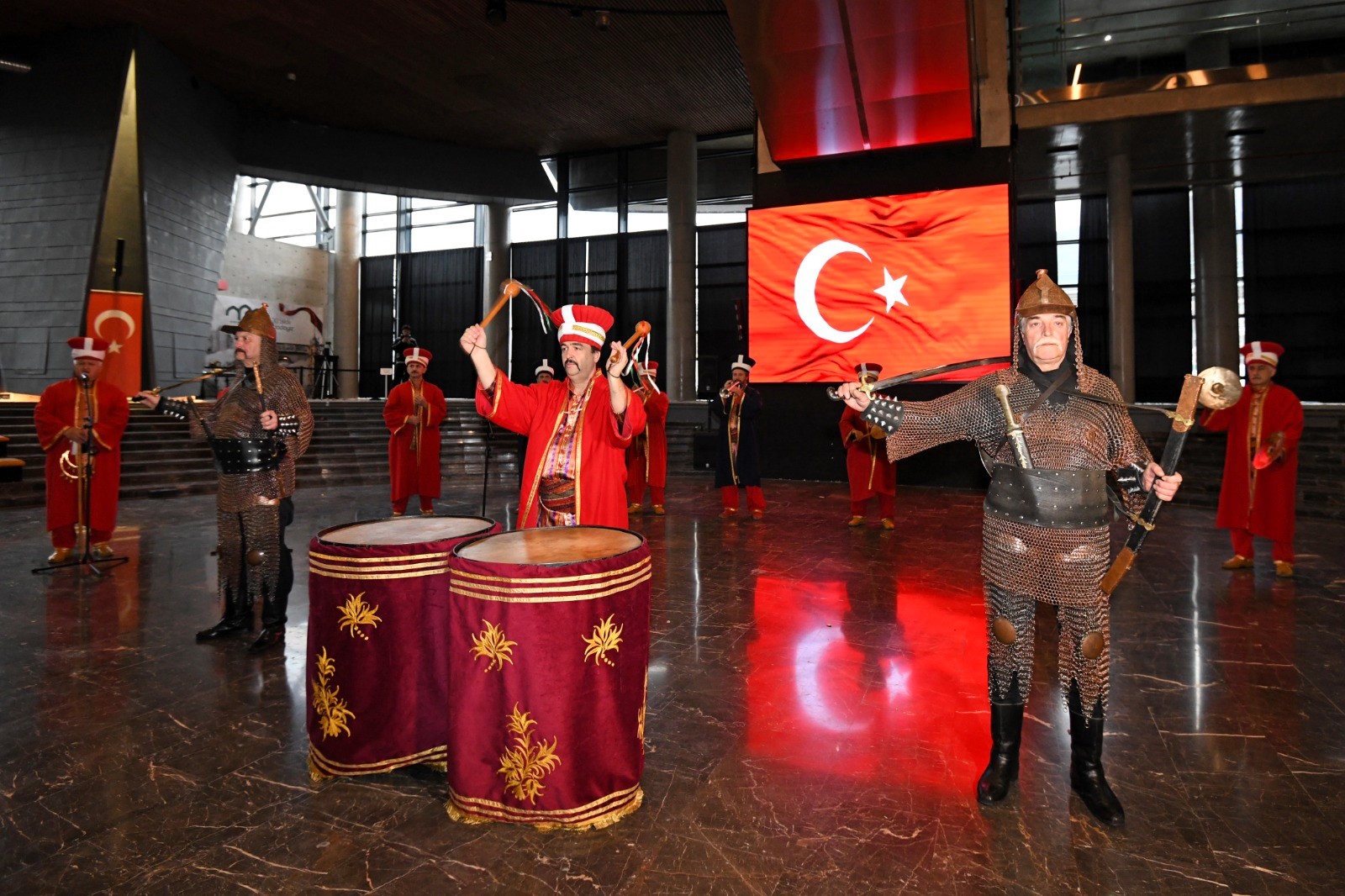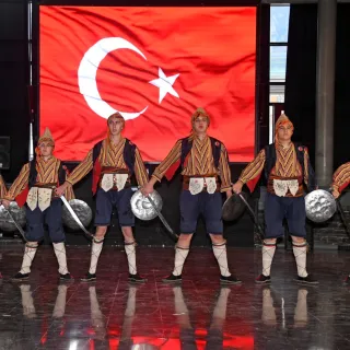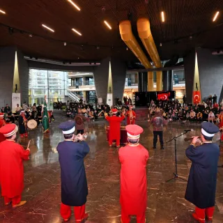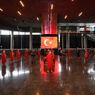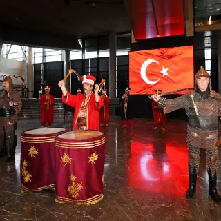 Tarihi Mehter Takımı ve Bursa Tahtakıran Kılıç Kalkan Ekibi, geçmişin ihtişamını bugünün estetiğiyle buluşturan Panorama 1326 Bursa Fetih Müzesi’nde ziyaretçilere görsel şölen yaşatıyor.