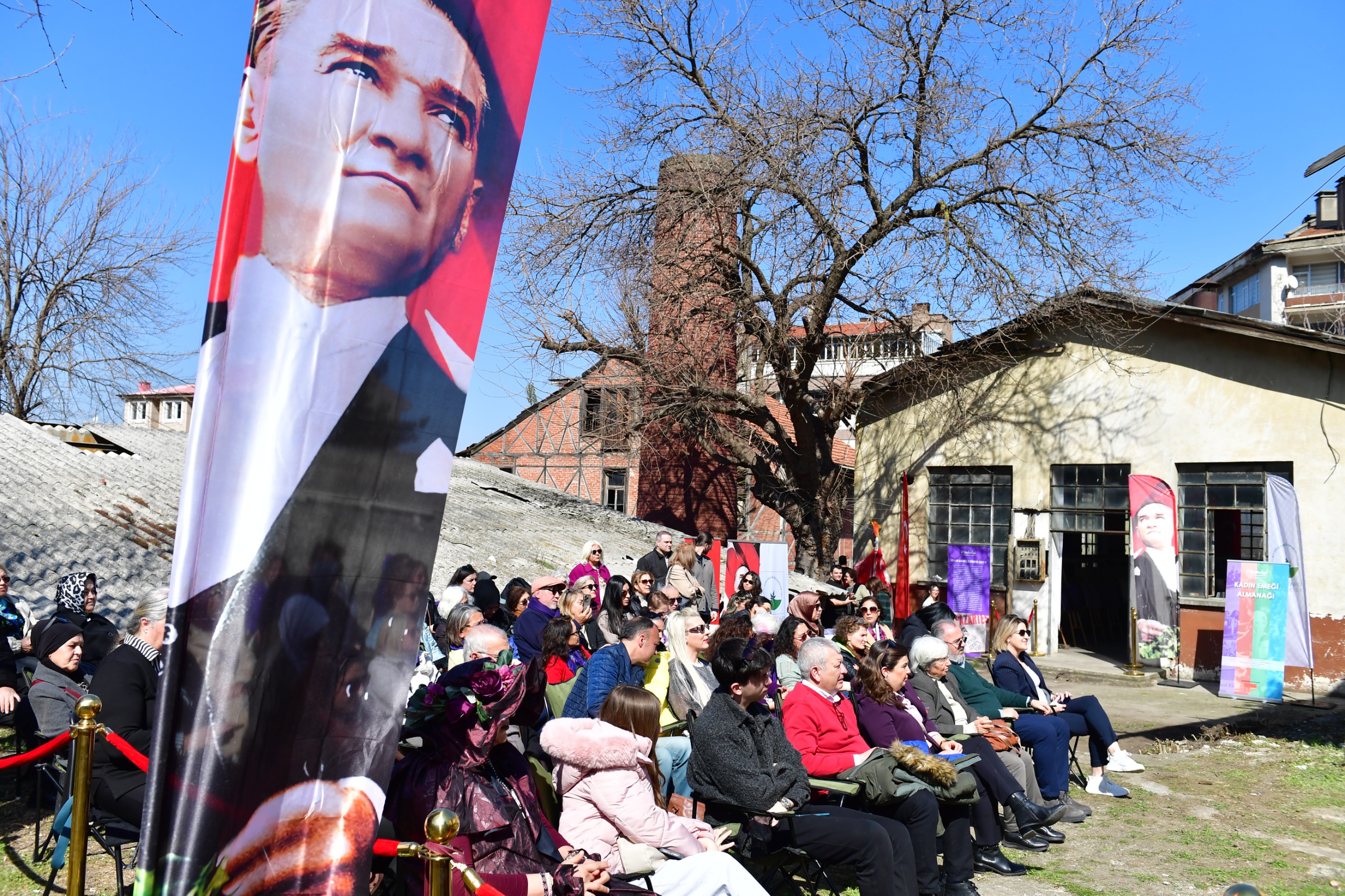 Bursa’nın ipek üretimi tarihinde önemli bir yere sahip olan ve geçmişte çok sayıda kadın işçinin çalıştığı Romangal Turgut Yılmazipek Fabrikası’nda düzenlenen program, mekanın tarihi kimliğiyle ayrı bir anlam kazandı.