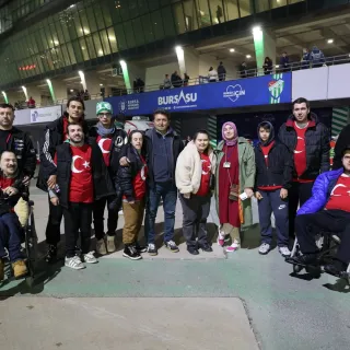 Maç boyunca büyük heyecan ve coşku yaşayan engelli bireyler milli maçı stadyumdan izlemelerini sağlayan Osmangazi Belediye Başkanı Erkan Aydın’a teşekkür etti.