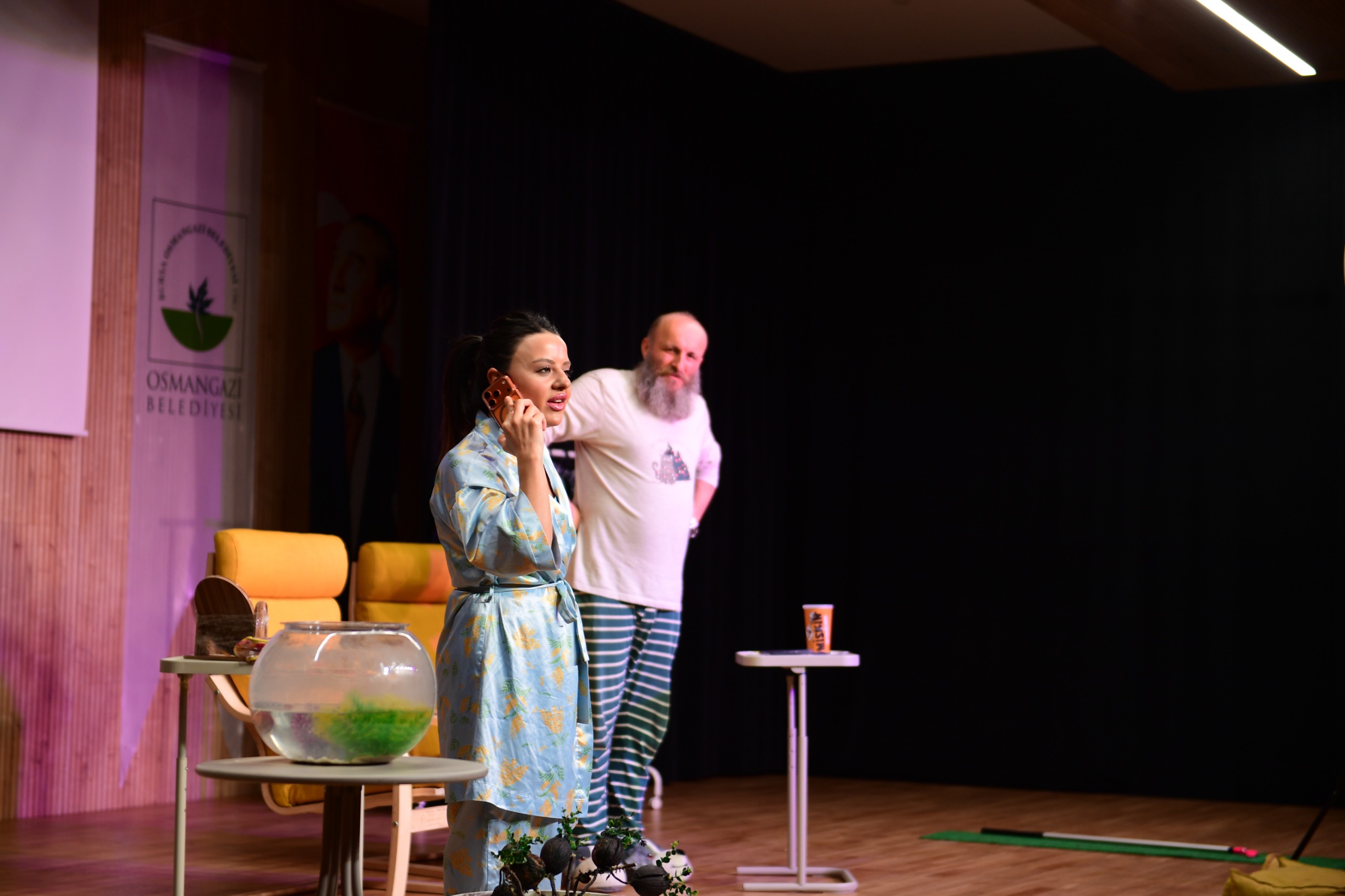 Kültürel yaşamı güçlendiren çalışmalarıyla sanatı toplumla bütünleştiren Osmangazi Belediyesi, ‘Hangisi Gerçek’ adlı tiyatro oyununu sanatseverler ile buluşturdu.