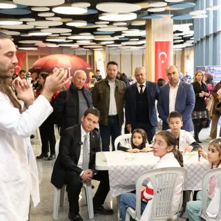 Açılışın ardından atölye alanlarını gezerek çocukların çalışmalarını yerinde inceleyen Başkan Erkan Aydın, çocuklarla sohbet etmeyi de ihmal etmedi.