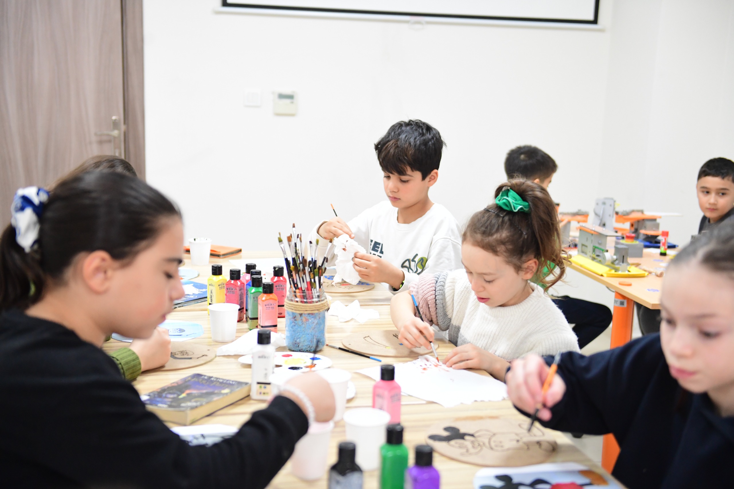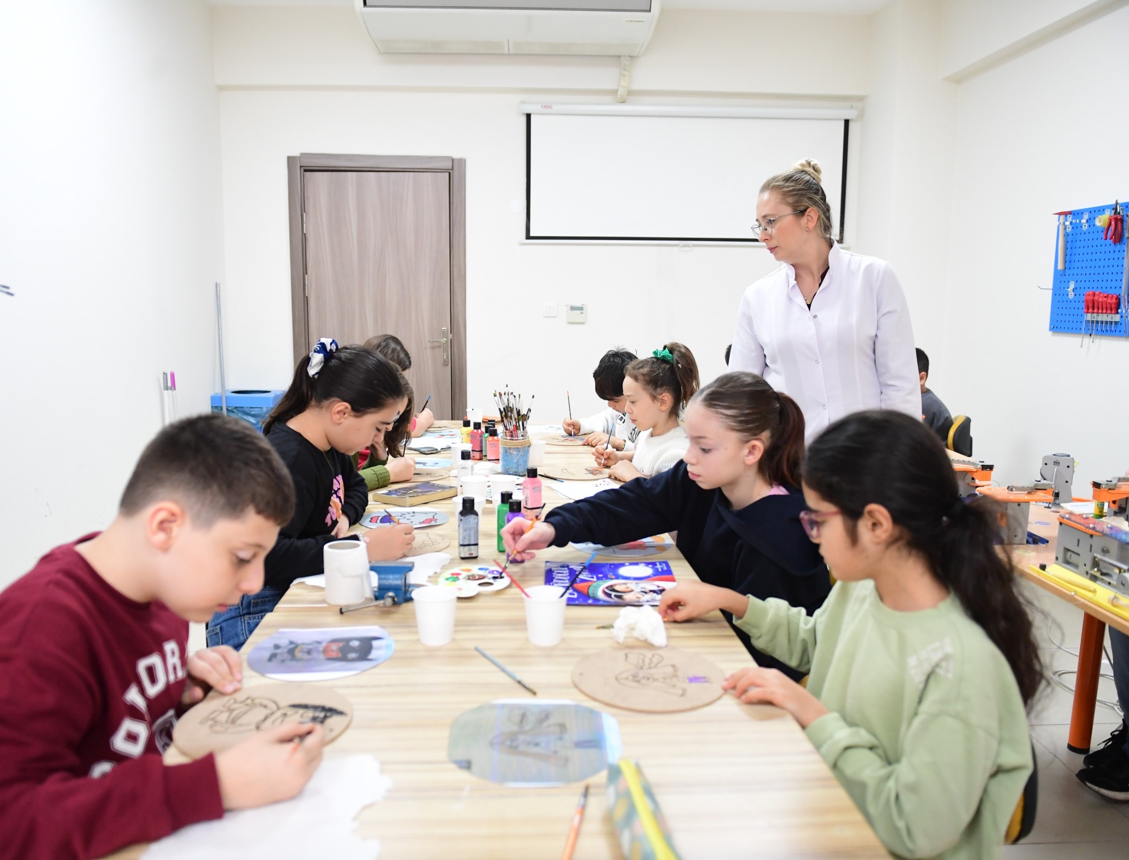 “Kütüphane birimimizle beraber ortak bir çalışma yaptık. Öğrencilerimiz, kütüphaneden aldığı kitapları okuyup, özetini çıkararak, oradaki bir kahramanın resmini çizerek atölyemize geldi. Önce tek boyutlu olarak atölyede ahşap üzerine çizimlerini yaptılar, daha sonra makinelerimizle bunu boyutlandıracaklar. Bu süreç, çocukların hem kas hem de motor gelişimlerini destekleyen çok kıymetli bir etkinlik. Etkinliğimizin amacı çocukların, özellikle günümüzdeki en büyük sorunlarımızdan sanal dünyadan çıkarak el becerilerini kullanabilecekleri, kendilerini koordine edebilecekleri bir etkinlik gerçekleştirmek. Ahşaba dokunuyorlar, ahşabı şekillendiriyorlar, boyutlandırıyorlar ve bunları bir araya getirerek kendi ürünlerini oluşturuyorlar. Aynı zamanda okuduklarını, anladıklarını resmedip, resmi boyutlandırıyorlar. Aslında çocuklar, birden fazla motor gelişimlerini kullanmış oluyor.”