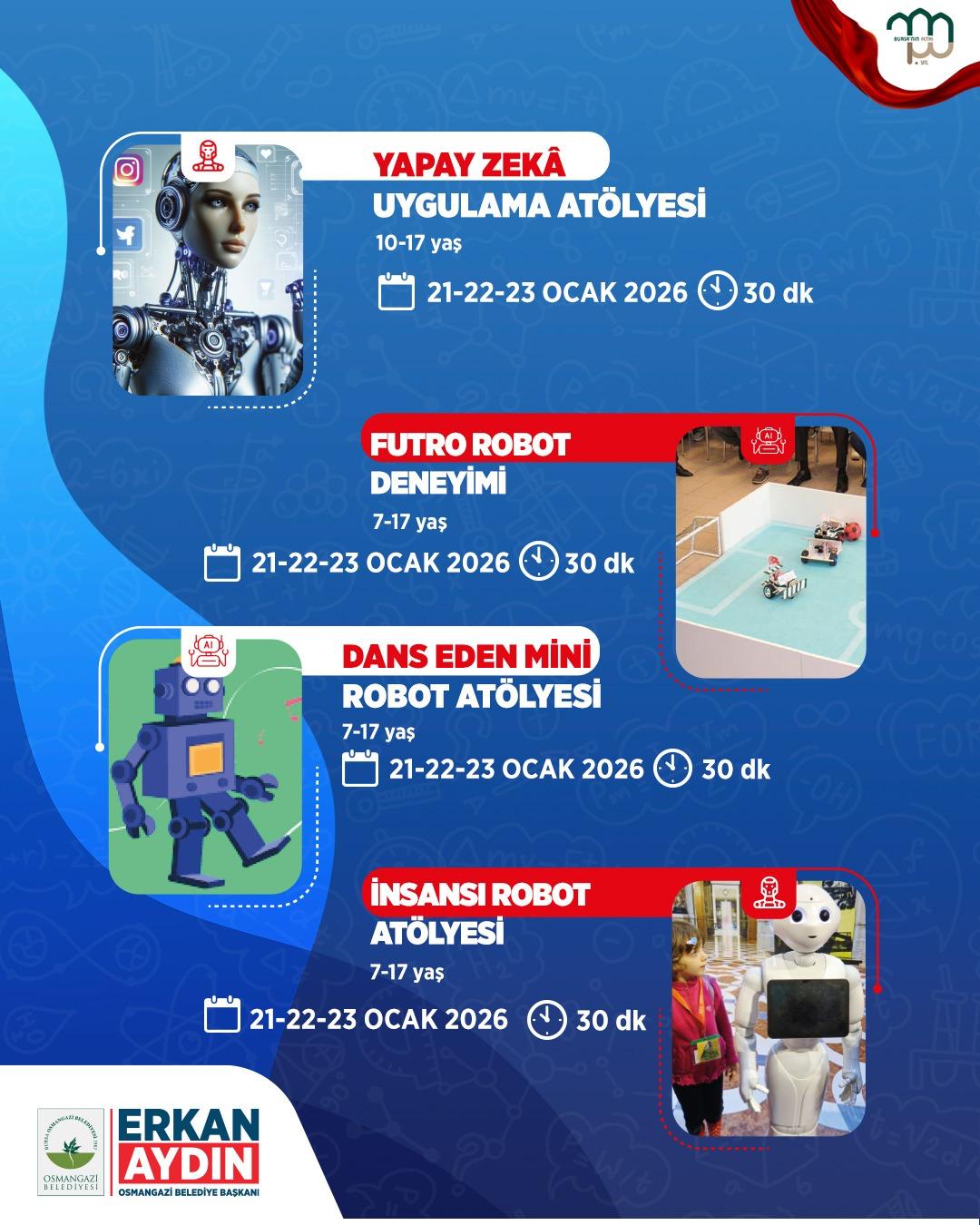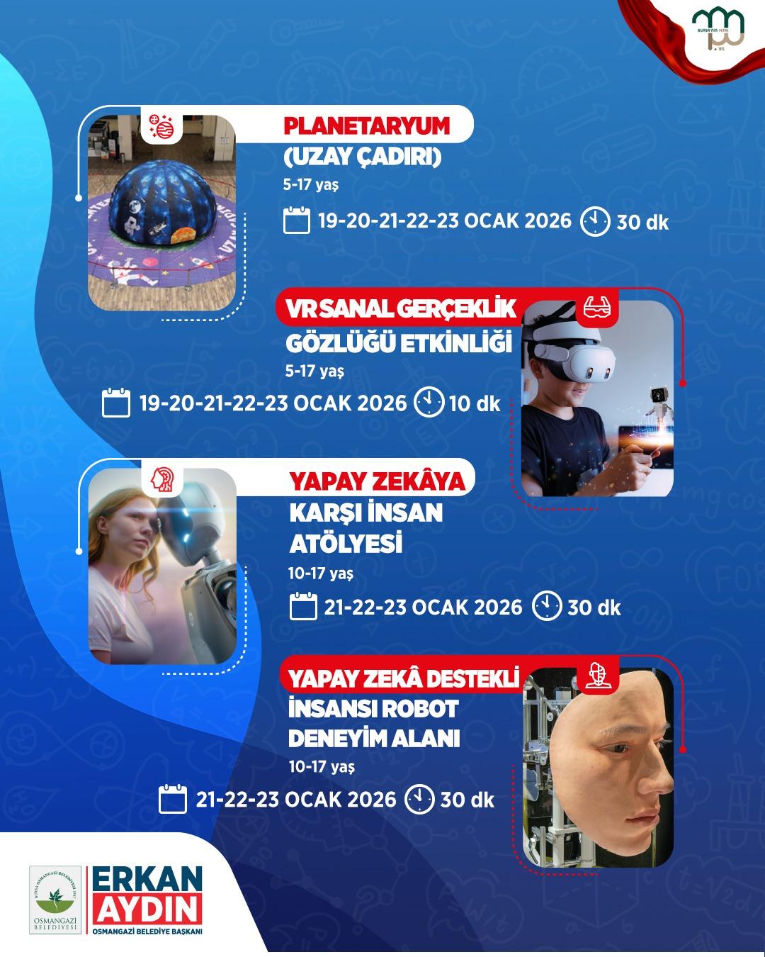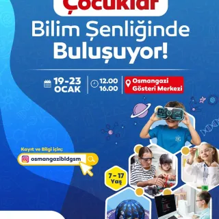 Osmangazi Belediyesi, 7–17 yaş arasındaki çocuklar ve gençler için dopdolu bir Bilim Şenliği düzenlemeye hazırlanıyor. Osmangazi Gösteri Merkezi’nin ev sahipliğinde 19–23 Ocak tarihleri arasında düzenlenecek olan şenlik, bilim ve teknoloji meraklısı çocuk ve gençleri bir araya getirecek.