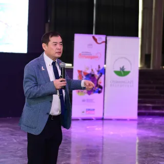 Söyleşinin ardından CHP Osmangazi İlçe Başkanı Raşit Gürbüz ve Osmangazi Belediyesi Meclis Üyesi Bakır Taşer, Yoshinori Moriwaki’ye teşekkür plaketi takdim etti.