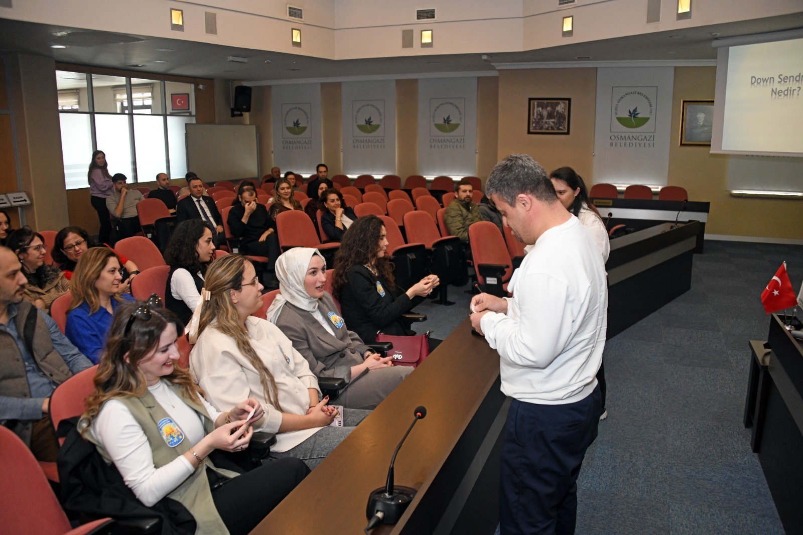 Osmangazi Belediyesi, 21 Mart Dünya Down Sendromu Farkındalık Günü kapsamında toplumsal bilinç oluşturmak ve özel bireylerin hayatın her alanında daha aktif yer almasına katkı sağlamak amacıyla eğitici ve anlamlı bir programa imza attı. Osmangazi Belediyesi Meclis Salonu’nda düzenlenen etkinlikte, Osmangazi Belediyesi Engelli Bakım Merkezi (OBAM) üyeleri sahne alarak farkındalık mesajı verdi. Programda OBAM üyesi down sendromlu çocuklar gerçekleştirdikleri sunumlarla izleyenlerden büyük alkış aldı. Kendi gelişim süreçlerini ve merkezde yürütülen faaliyetleri anlatan özel bireyler, özgüvenleri ve ifade becerileriyle dikkat çekti.