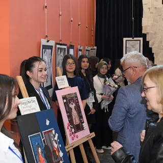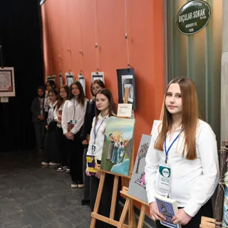 Bursa İl Milli Eğitim Müdürlüğü AR-GE Birimi’nin hazırladığı ve Türkçe ile dil eğitiminde iyi örnek olarak sunulacak çalışma, bu yıl için bir sergiye dönüştürüldü. Nursel Çağlar Anadolu Lisesi öğrencileri, okudukları eserlerden etkilenerek kahramanları, mekanları ve dikkatlerini çeken sözleri resimlerine yansıttı. Öğrencilerin tamamen kendi seçimleriyle şekillenen eserler, edebiyatın derinliğini görsel sanatlarla buluştururken; Bursa’ya özgü geleneksel sanat ve zanaat unsurlarıyla zenginleştirildi.