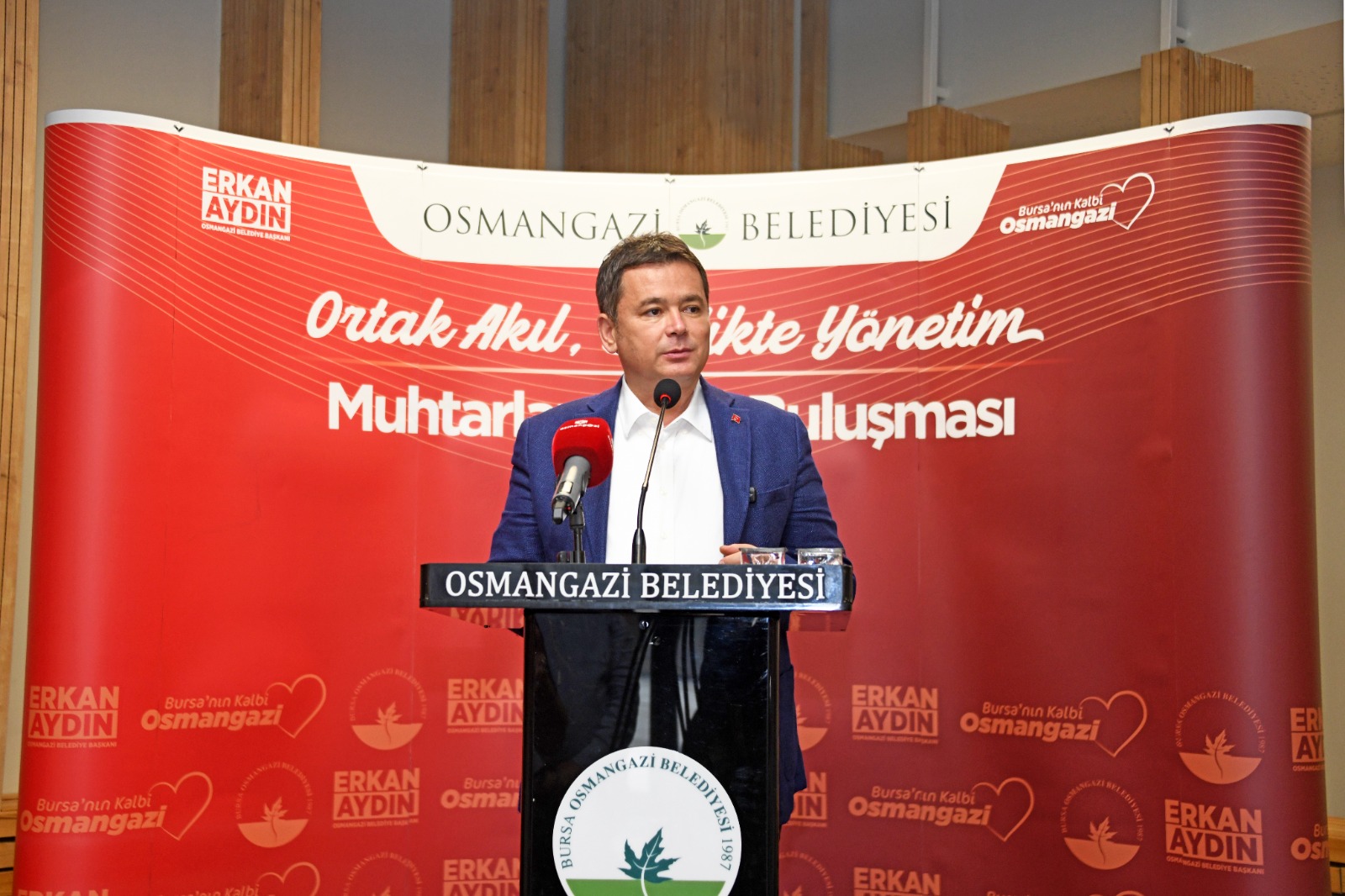 Tüm muhtarların 19 Ekim Muhtarlar Gününü kutlayarak sözlerine başlayan Osmangazi Belediye Başkanı Erkan Aydın, "Muhtarlar demokrasinin yapı taşlarıdır. En altta vatandaşla birebir temas eden gecenin 12'inde de sabahın 5'inde de ilk aranılıp kapısı çalınan muhtarlardır. 18 Ekim 1829 yılında muhtarlık teşkilatı kuruldu. 2015 yılından itibaren de ülkemizde kutlanıyor. 4 yıl sonra muhtarlık teşkilatının 200'üncü yılı kutlanacak. 31 Mart’ta mazbatasını alamadan hayatını kaybeden Gökçeören Muhtarımız Emin Batmaz'a yine Seçköy Muhtarımız Hüseyin Türe'ye ve son olarak Yiğitali Muhtarımız Şaban Kaya'ya Allahtan rahmet yakınlarına başsağlığı diliyorum.