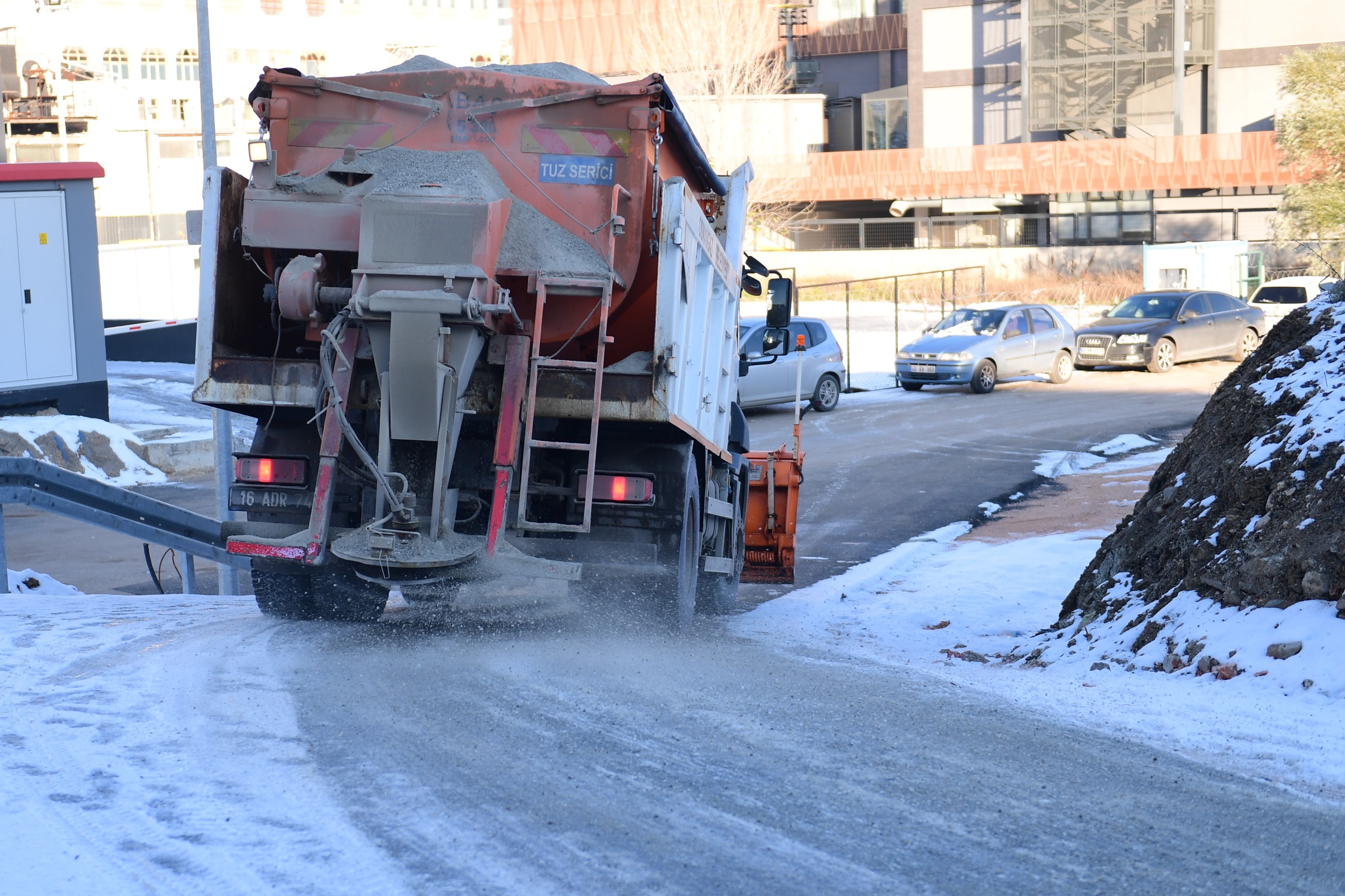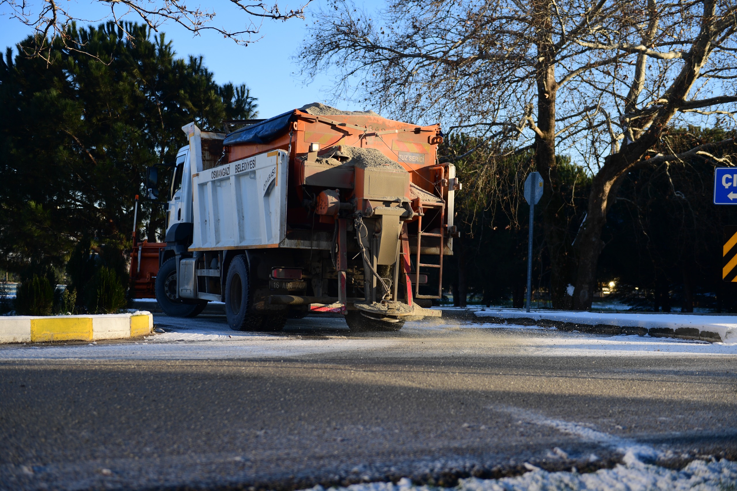 Yeni yılın ilk gününde etkili olan kar yağışıyla birlikte teyakkuzda olan Osmangazi Belediyesi ekipleri, yollardaki buzlanmaları önlemek amacıyla tuzlama çalışmaları gerçekleştirdi.