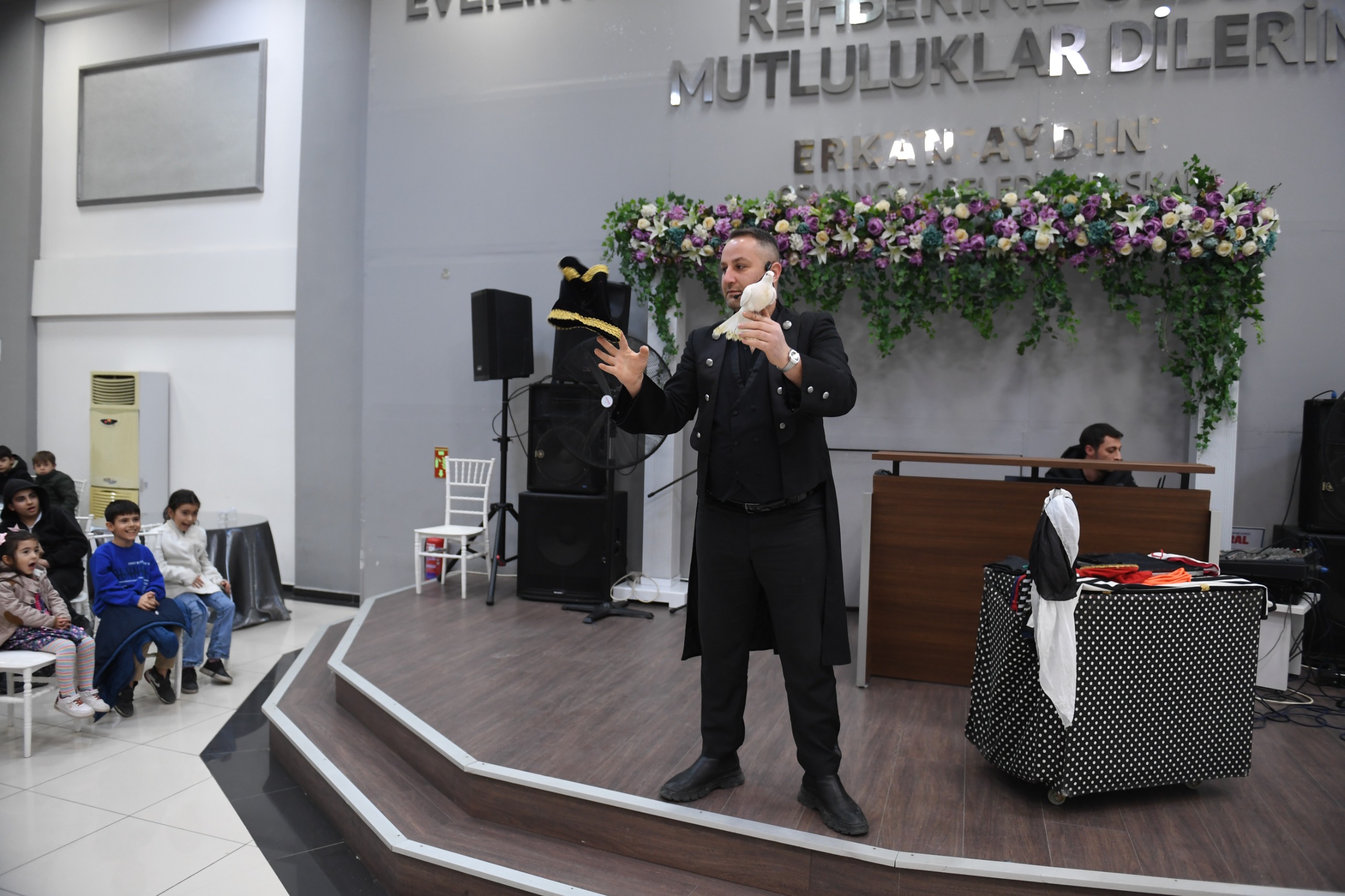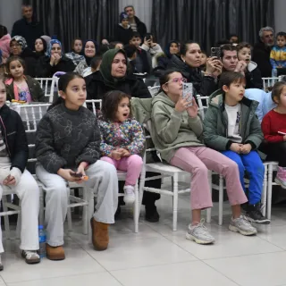 Program kapsamında sahnelenen sihirbazlık gösterisi de çocukların yoğun ilgisini çekti. Birbirinden ilginç numaralar sergileyen sihirbazın gösterileri sırasında çocuklar şaşkınlıklarını gizleyemezken, sahnede yaşanan renkli anlar salonda büyük bir heyecan yarattı. Sihirbazın gerçekleştirdiği numaraları büyük bir dikkatle takip eden çocuklar, gösteri boyunca alkışlarıyla ve kahkahalarıyla eğlenceye ortak oldu.