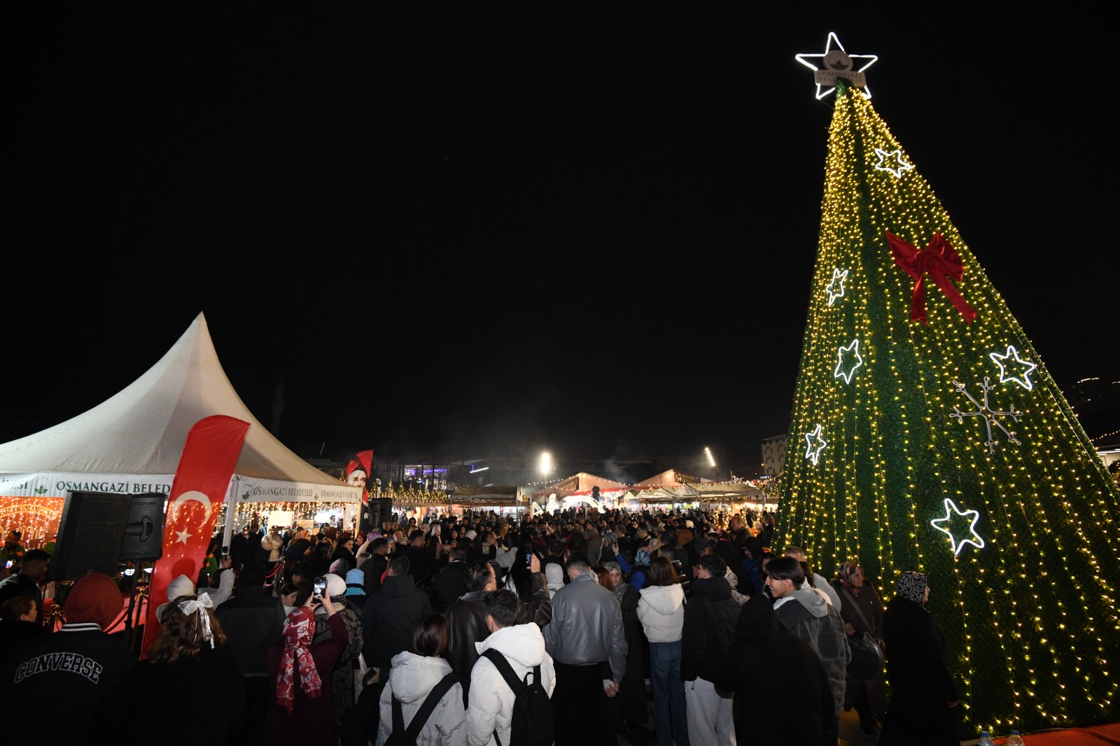 Osmangazi Meydanı, akşam saatlerinde hayata geçirilen etkinliklerle yeni yıl atmosferini şehir merkezine taşıdı. Işıklandırmalar ve müzik etkinlikleriyle canlanan meydan, festival coşkusunu zirveye çıkardı.