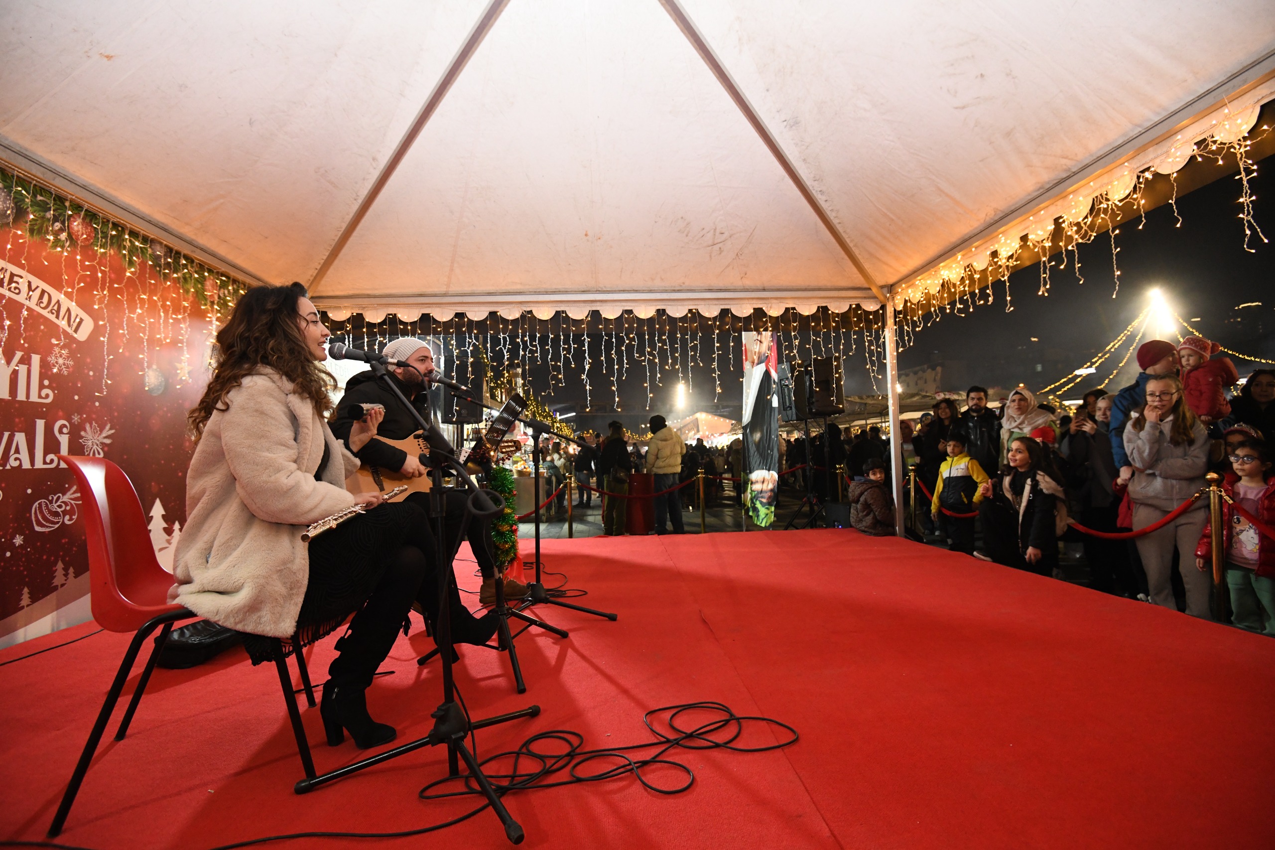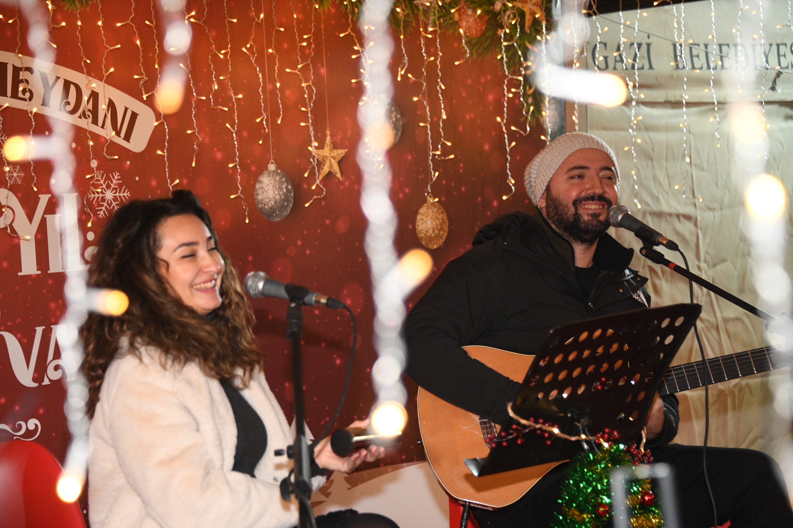 Osmangazi Belediyesi’nin ev sahipliğinde düzenlenen Yeni Yıl Festivali, birbirinden renkli etkinlikleriyle Osmangazi Meydanı’nı adeta bir buluşma noktasına dönüştürmeye devam ediyor. Festival kapsamında sahne alan Serap & Erdinç, mini akustik konserleriyle Bursalılara unutulmaz bir müzik ziyafeti sundu. Sevilen şarkıları kendilerine özgü yorumlarıyla seslendiren ikili, soğuk havaya rağmen meydanı dolduran kalabalığın içini ısıttı. Konser boyunca şarkılara hep bir ağızdan eşlik eden vatandaşlar ise ortaya renkli ve keyifli görüntüler çıkardı.